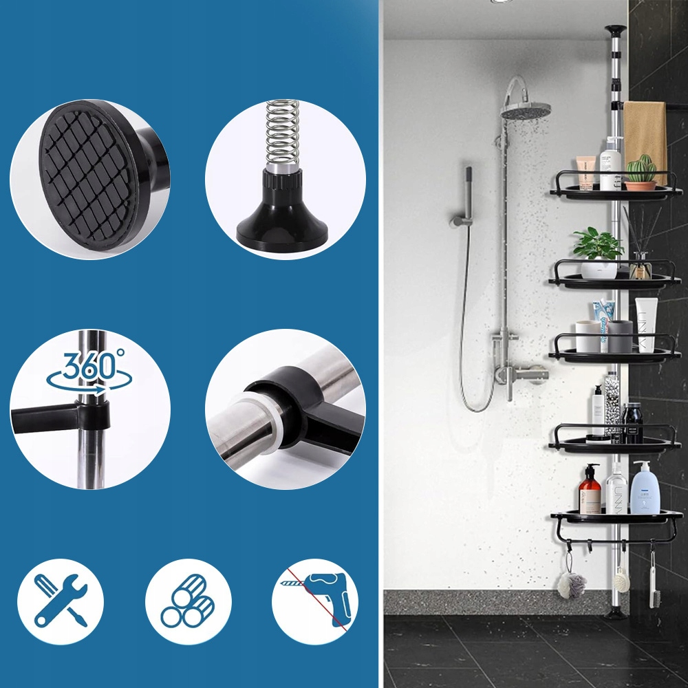 ✅Простая установка, не требуются инструменты и сверление, опорный стержень имеет встроенную пружину длиной в сжатом состоянии 3-5 см.