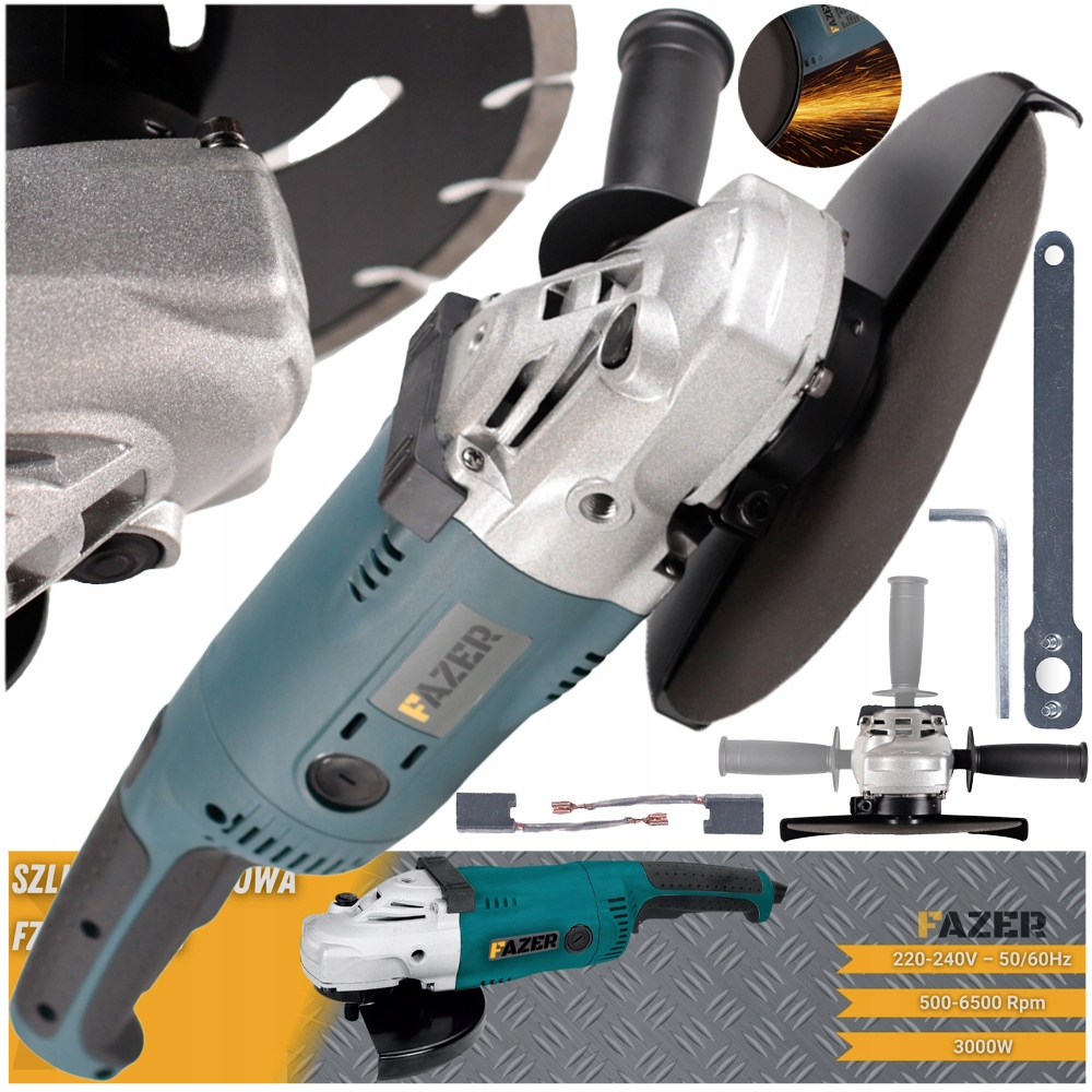 КУТОВА ШЛІФУВАЛЬНА МАШИНА 230 ММ ВІЛЬНИЙ СТАРТ КУТНИК ВЕЛИКИЙ МІЦНИЙ ДІАКС + КОМПЛЕКТ 3000W