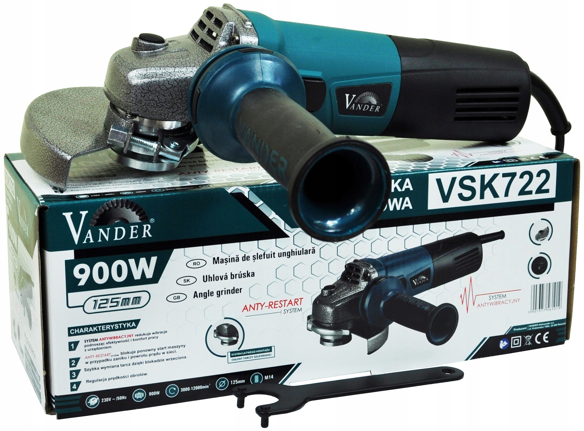- Угловая шлифовальная машина VANDER VSK722 с регулируемой скоростьюКлюч для винтов с головкой - 1 шт.Углеродные щетки - 2 шт.Руководство пользователя.