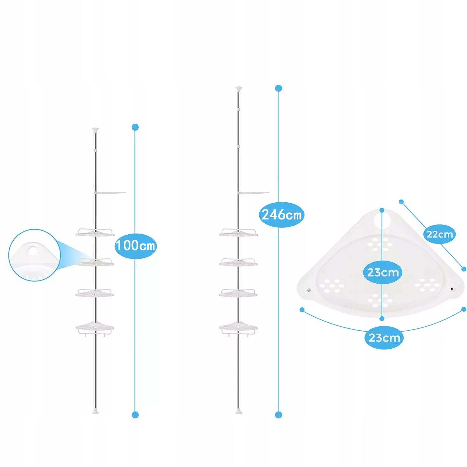 Регулируемую угловую полку для ванной комнаты можно регулировать в диапазоне 100- 246 см b> в зависимости от ваших потребностей. Тягу можно быстро и легко установить в зависимости от размера помещения, чтобы расширить или сузить его. Высоту между корзинами для хранения также можно регулировать в зависимости от размера хранимых предметов. Регулируемый дизайн удобнее хранить и использовать.