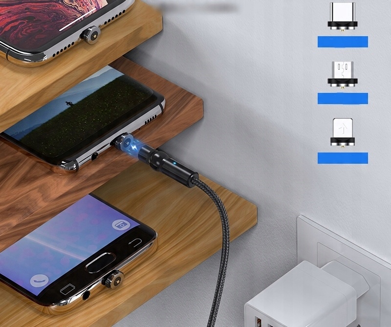 Поворотные вилки Micro USB/USB-C/Lightning + длинный шнур питания длиной 200 см