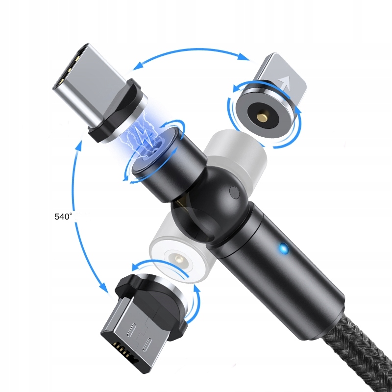 Поворотные вилки Micro USB/USB-C/Lightning + длинный шнур питания длиной 200 см