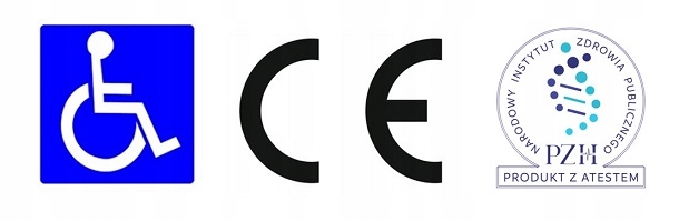 вышеуказанные сертификаты удостоены санитарии и позволяют возмещать средства PCPR. также стоит знать, что оборудование для ванной комнаты для инвалидов покрывается более низким налогом на НДС 8%.