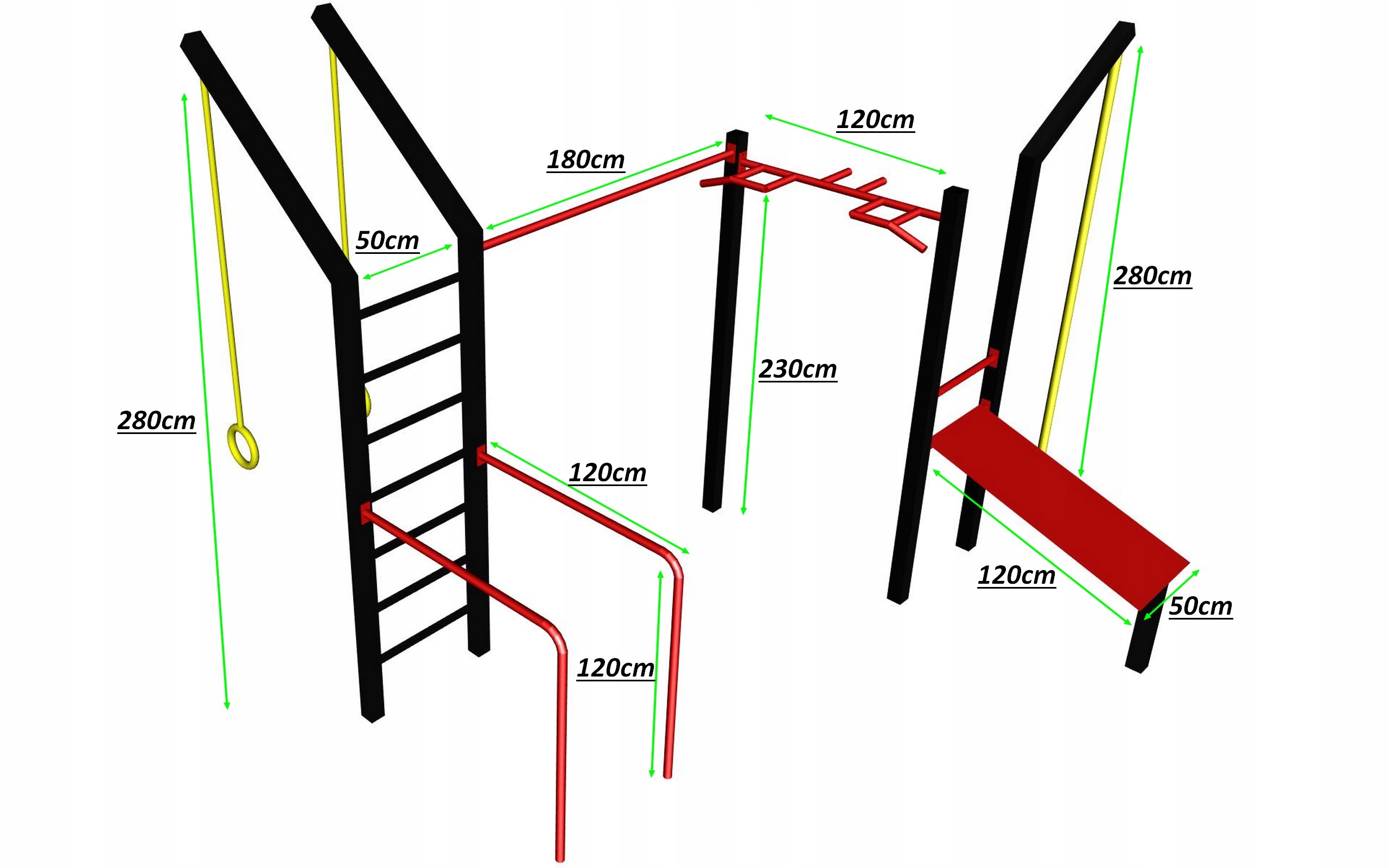 Комплект привинчен и пригоден для заливки в бетон, а благодаря антикоррозионной защита и порошковое покрытие, идеально подходит для тренировок на открытом воздухе, независимо от сезона