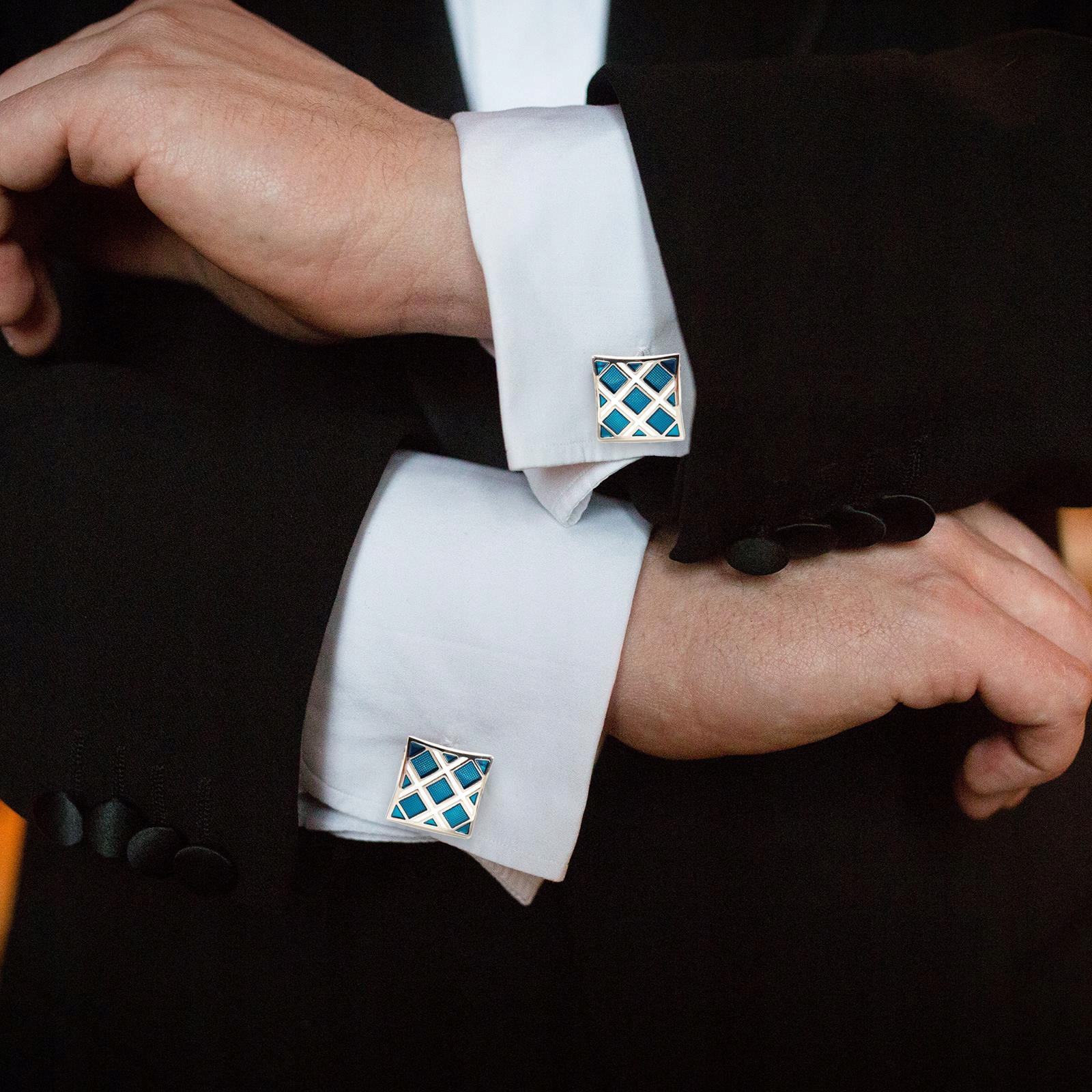Квадратні чоловічі запонки з картатим візерунком. Офіційні запонки для
