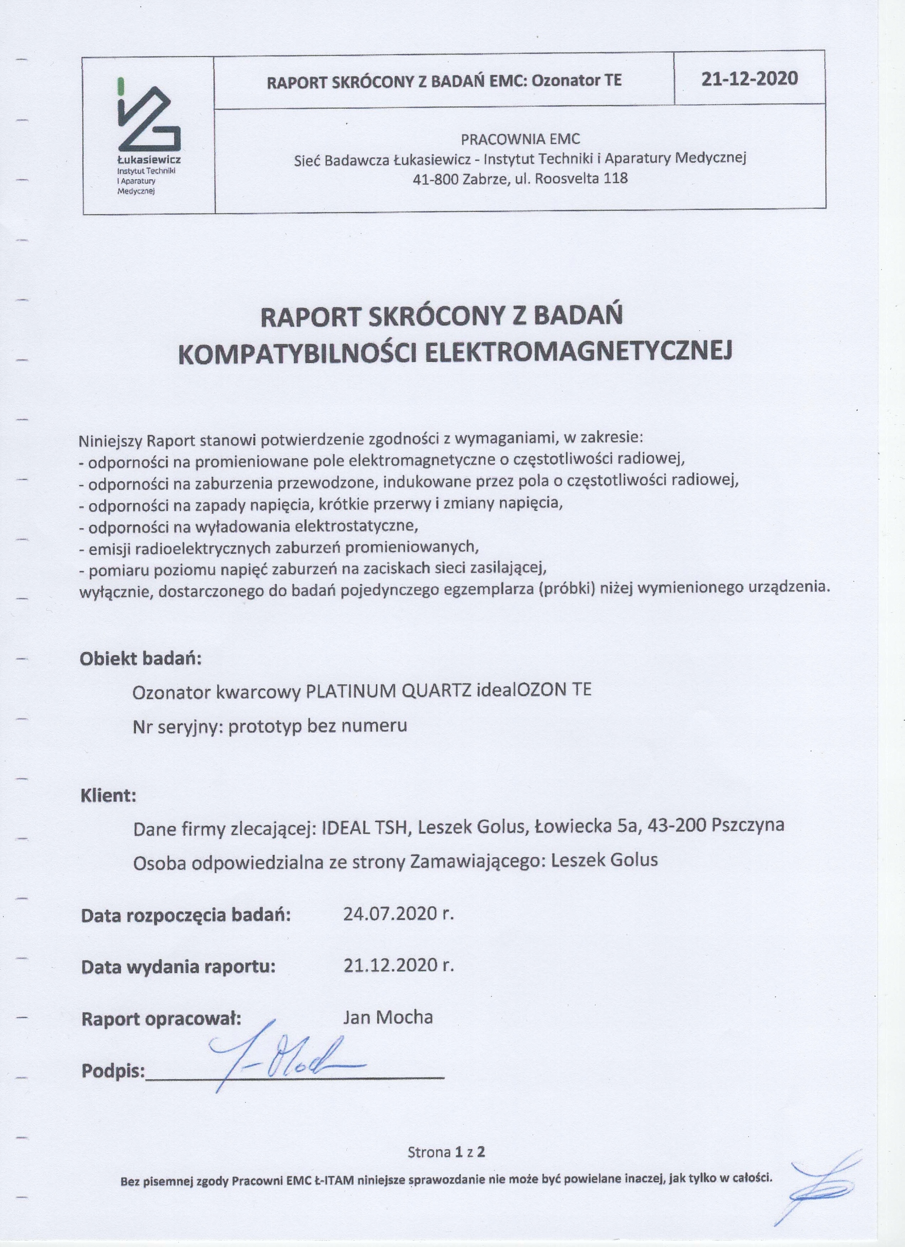 - Протестировано в ИНСТИТУТЕ ТЕХНОЛОГИИ И МЕДИЦИНЫ ОБОРУДОВАНИЕ "ИТАМ" в Забже