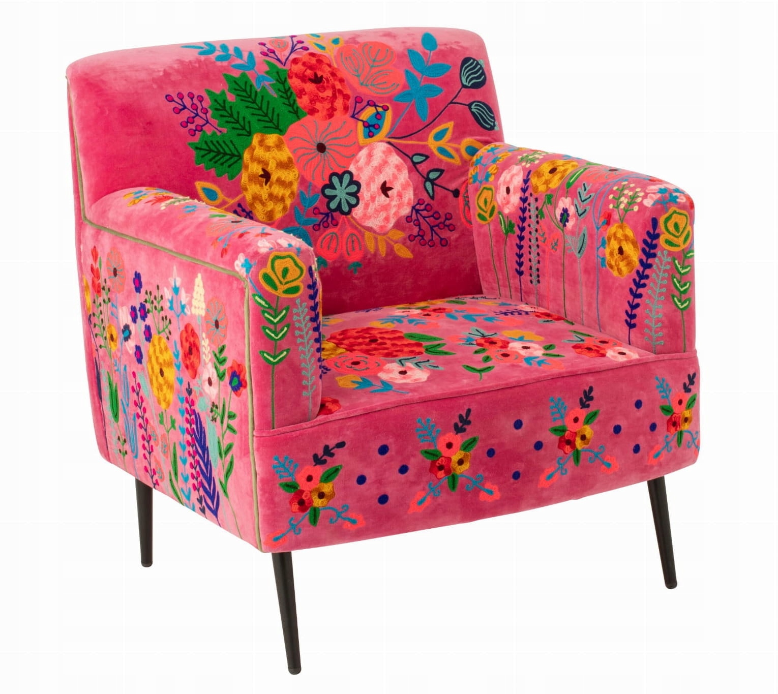 Мягкое кресло с цветочной обивкой из последней коллекции J-Line станет неповторимым акцентом в интерьере. Это уникальное кресло интенсивного розового оттенка (фуксия) с красочным цветочным узором — предмет мебели, который сразу привлекает внимание. Обивка выполнена из мягкой, приятной на ощупь велюровой ткани, сочетающей в себе комфорт использования и неповторимый стиль. Каждое изделие, украшенное узором в ярких цветах, становится маленьким произведением прикладного искусства.