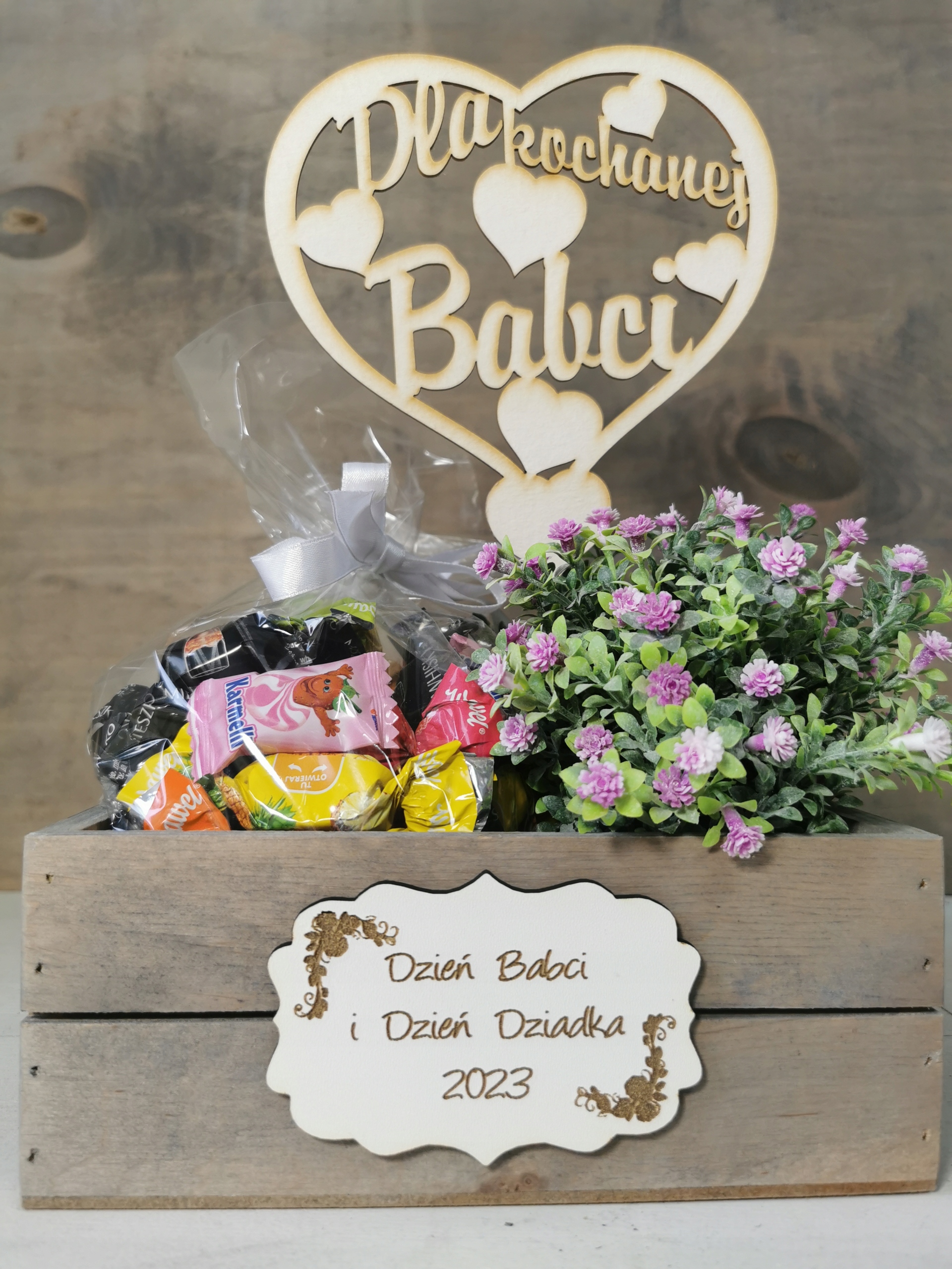 КВІТИ В КОРОБЦІ ЦУКЕРКИ ДЕНЬ ДІДУШКА ТА ДІДУШКА