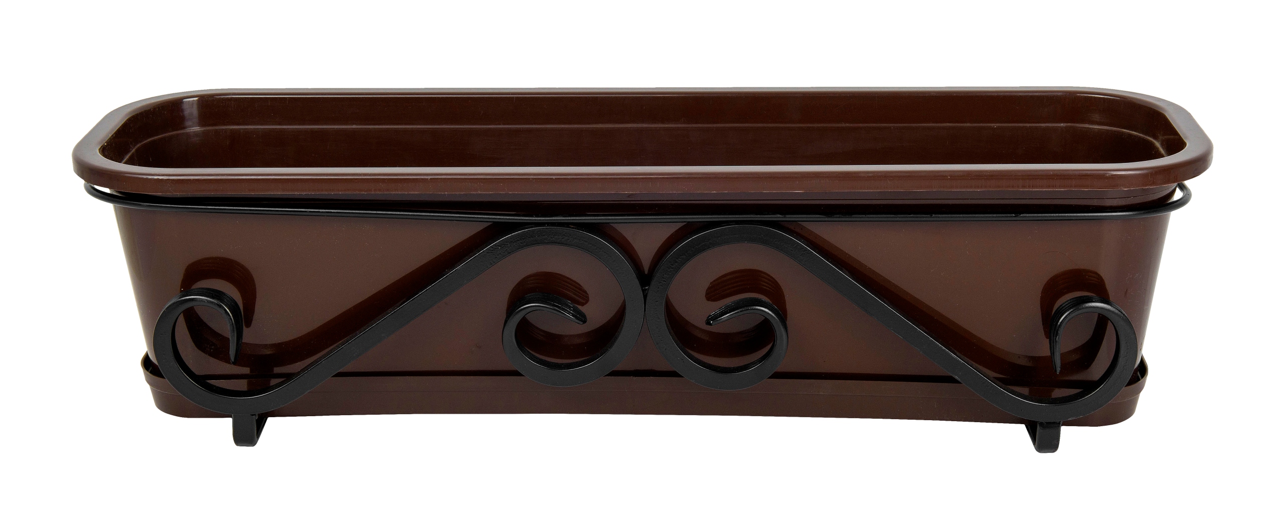 Балконный вазон КОРИЧНЕВЫЙ 60 см + КОВАННАЯ ручка "S"