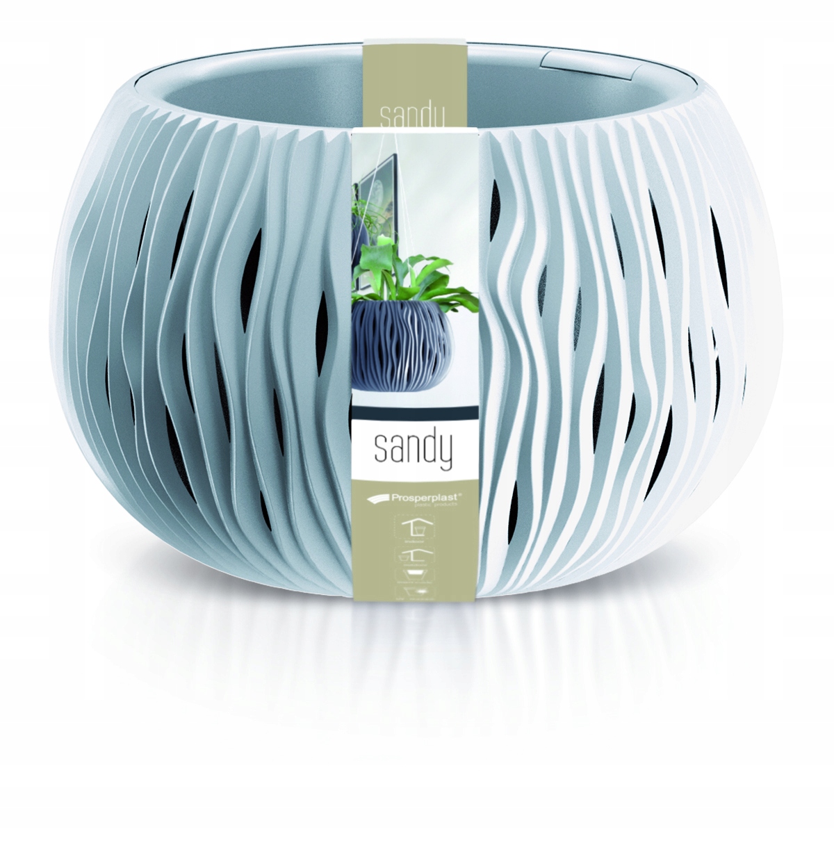 Круглые цветочные горшки семейства SANDY вдохновлены традиционной керамикой ручной работы. Игра света на чрезвычайно эффектных бороздках придает им декоративную выразительность. Обращает на себя внимание их фактура с волнистыми вертикальными бороздками, частично раскрывающими цвет вставки внутри, что дает дополнительный цветовой эффект. Они имеют вставки с удобными ручками, благодаря чему мы легко достает высаженные растения из колпака.