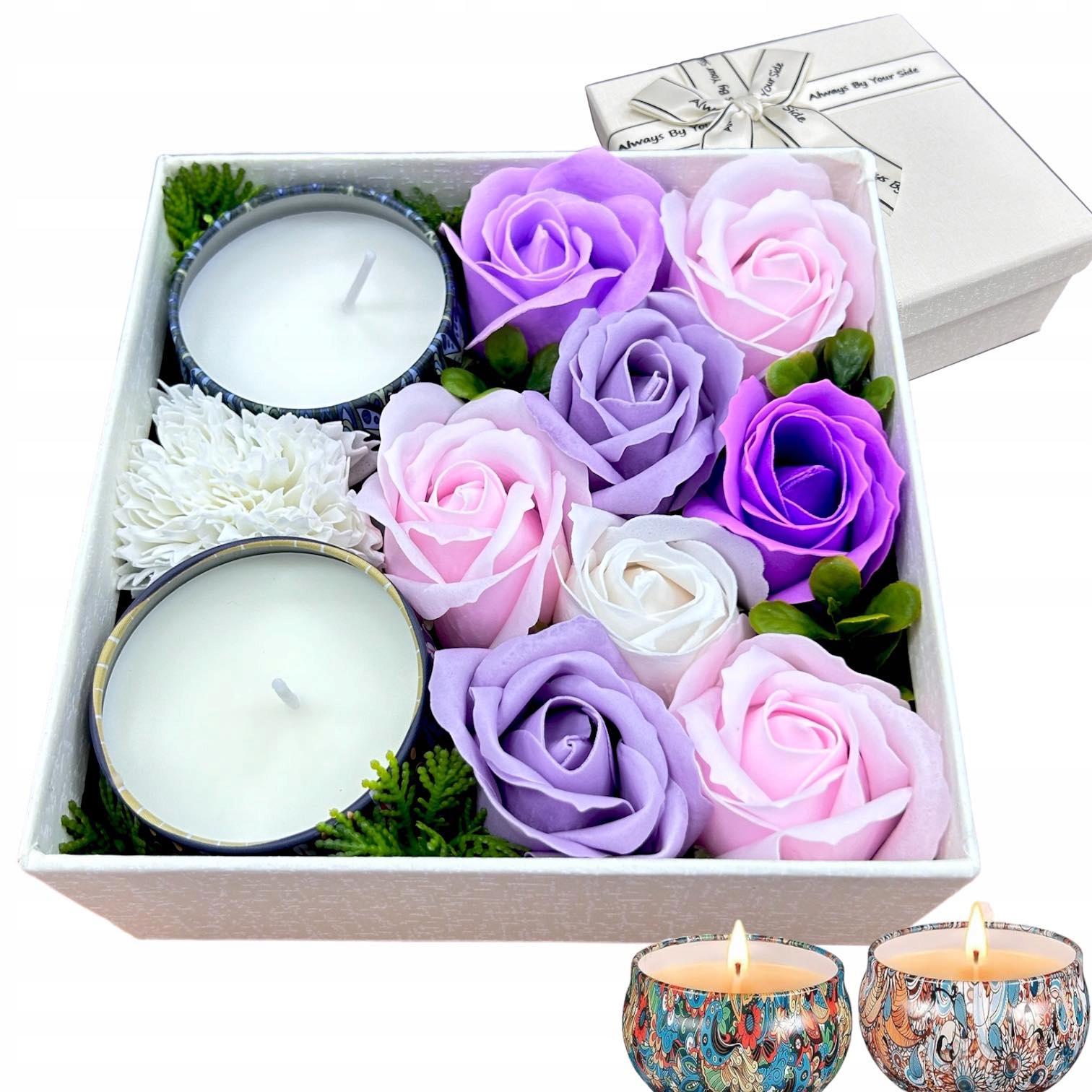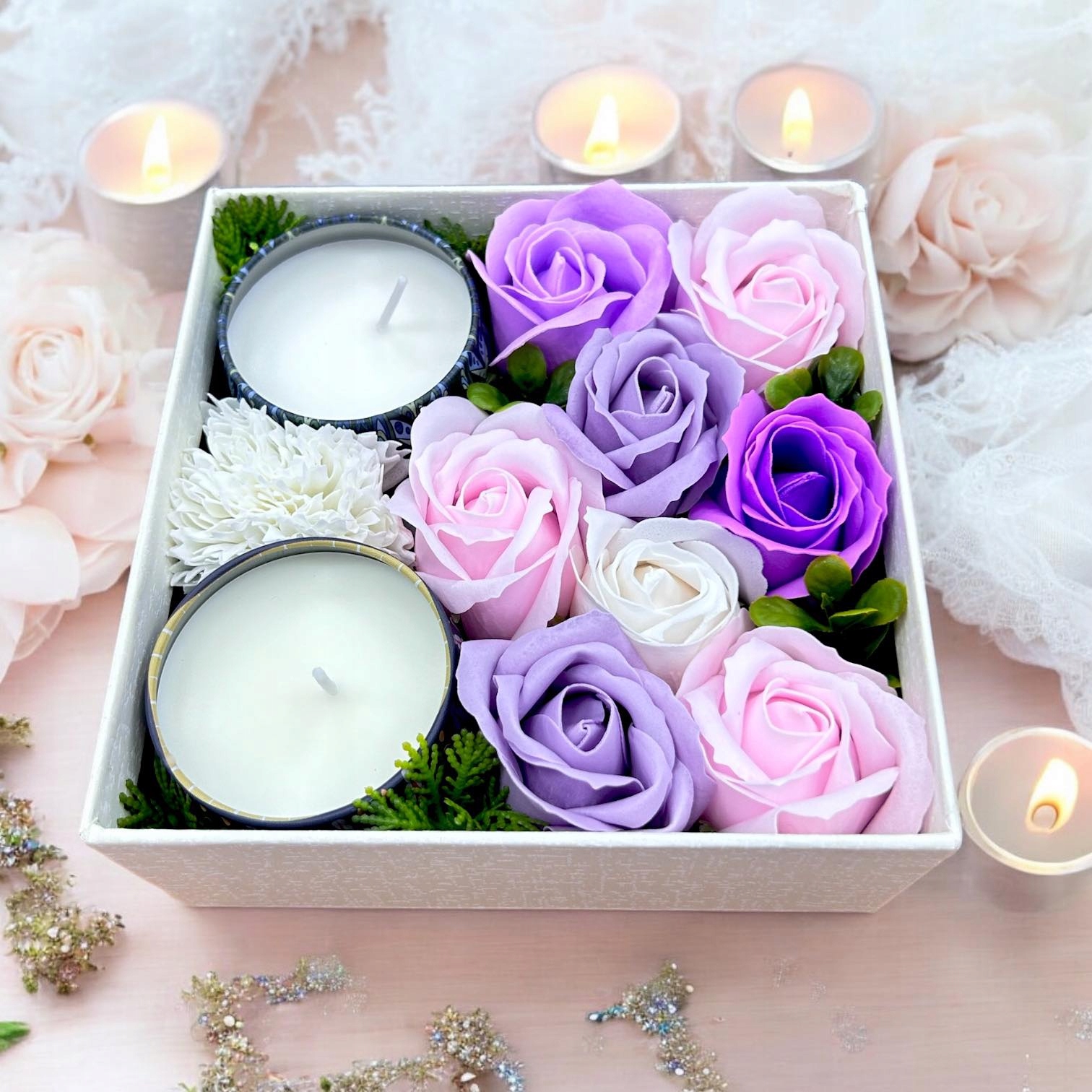 Цветочная коробочка с мыльными цветами и ароматической свечой – отличный подарок на любой случай!