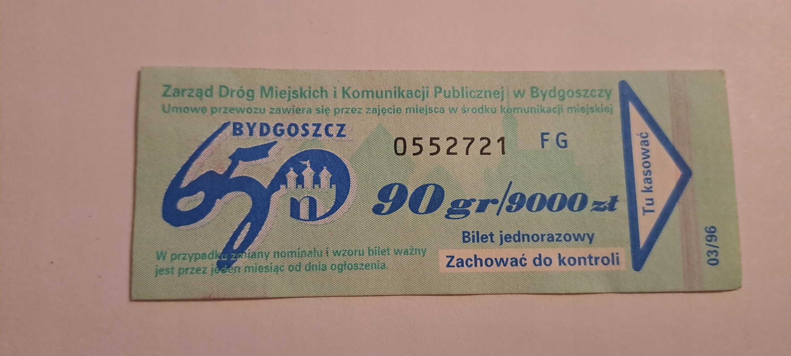 Билет bydgoszcz 90gr/9000 pln 03/1996