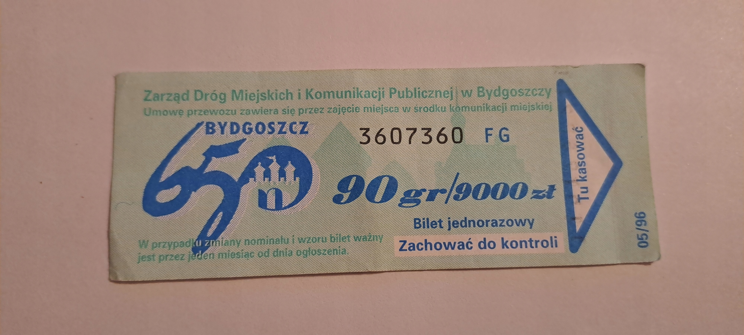 Билет bydgoszcz 90gr/9000 pln 05/1996