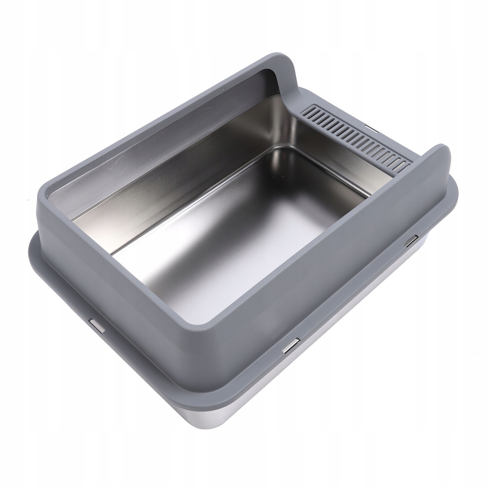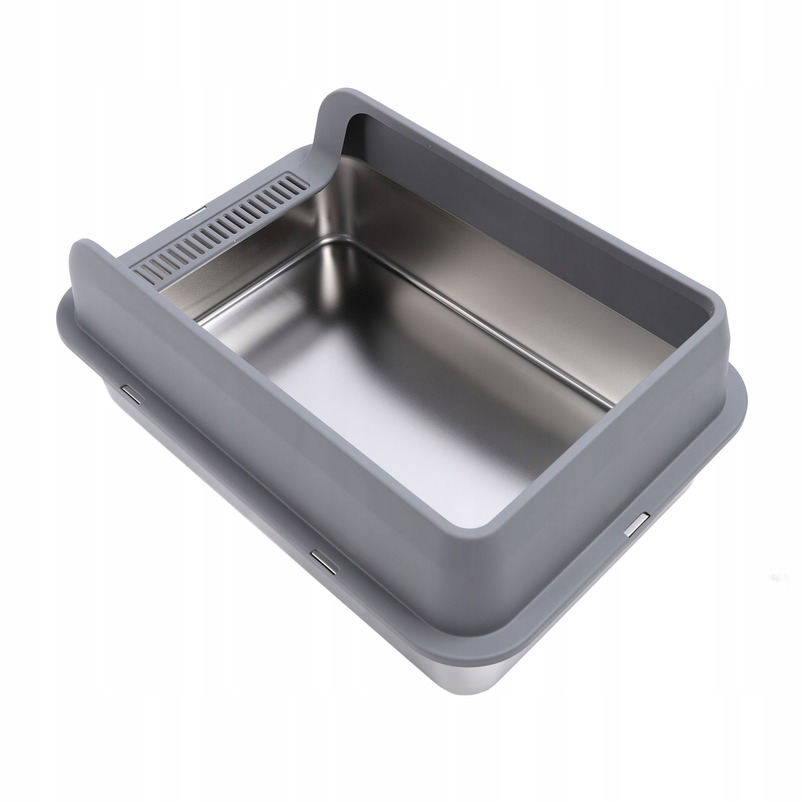 4. Высокая боковая стенка: лоток для кошачьего туалета из нержавеющей стали имеет высокие стенки, которые предотвращают разбрызгивание мусора, что снижает необходимость уборки и делает окружающую среду более аккуратной.
