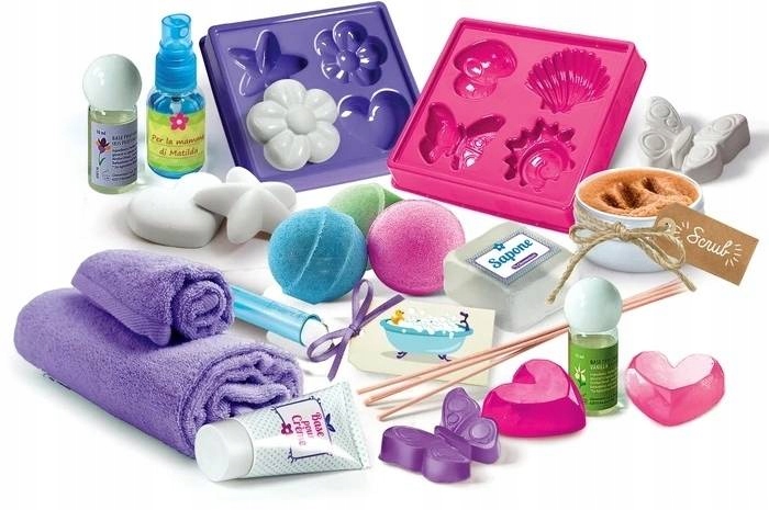В набор входит все необходимое, чтобы приблизиться к миру косметики и за несколько простых шагов изготовить парфюмированные пенки, бомбочки для ванн, мыло, кремы и многое другое. Подробные инструкции сопровождают детей на отдельных этапах экспериментов, проводимых в полностью безопасных условиях, и объясняют принципы, лежащие в основе косметологии.