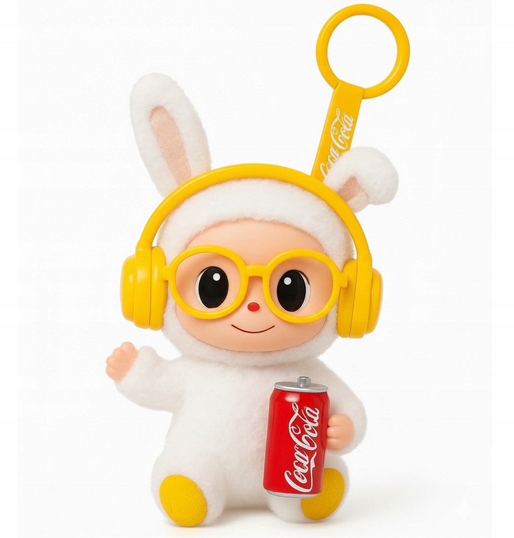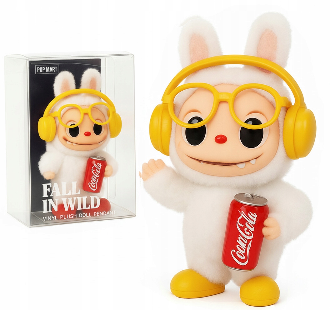 Очаровательный талисман из серии POP MART x Coca-Cola - Fall in Wild – настоящий праздник для коллекционеров и любителей уникальных гаджетов. На фигурке изображена фигурка в белом меху, с большими глазами, красными наушниками и очками. В руках он держит культовую банку Coca-Cola, и выглядит все это чрезвычайно эффектно.