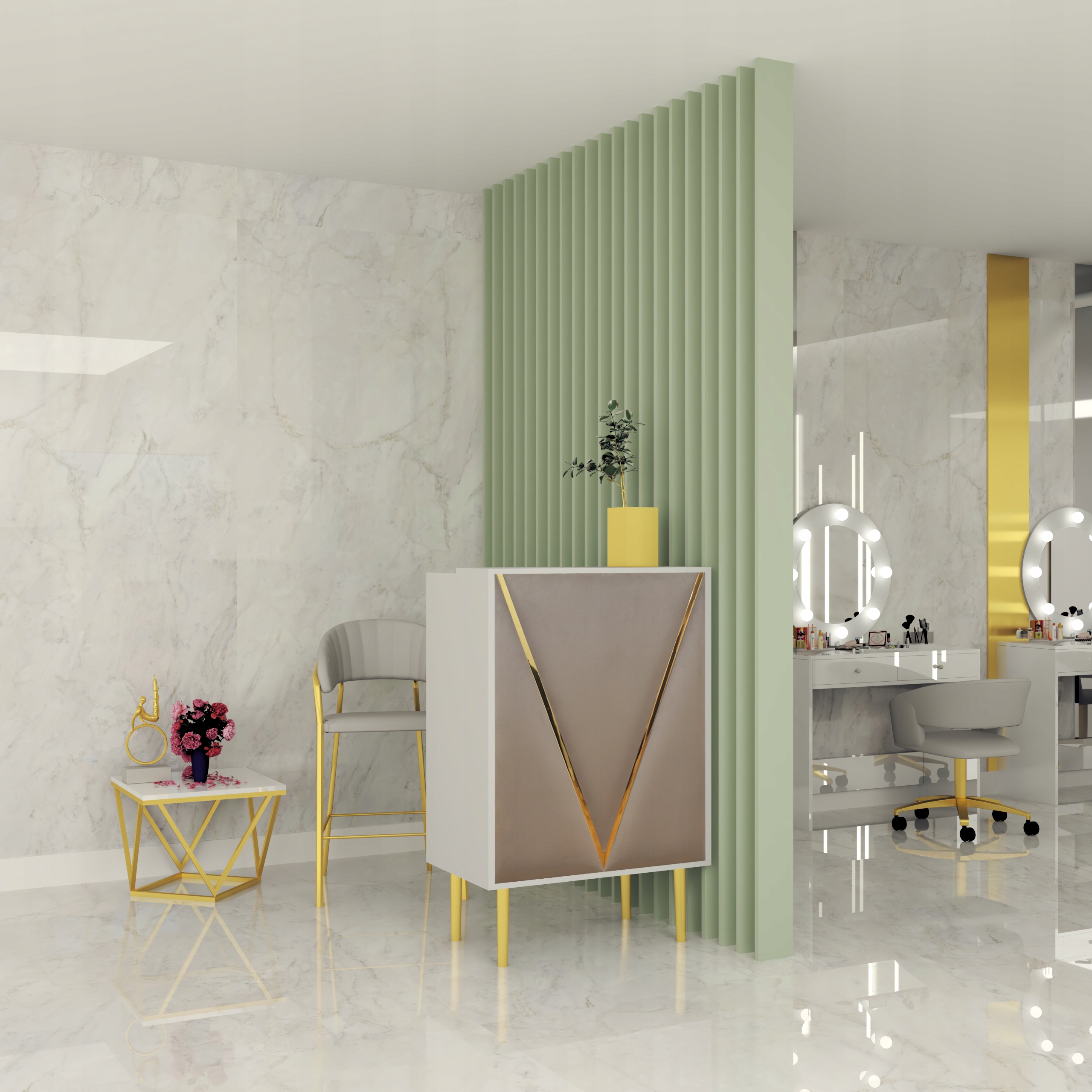 Прием для салона красоты или парикмахерской Klara 3 Kashmir + Gold с бежевой панелью обивки