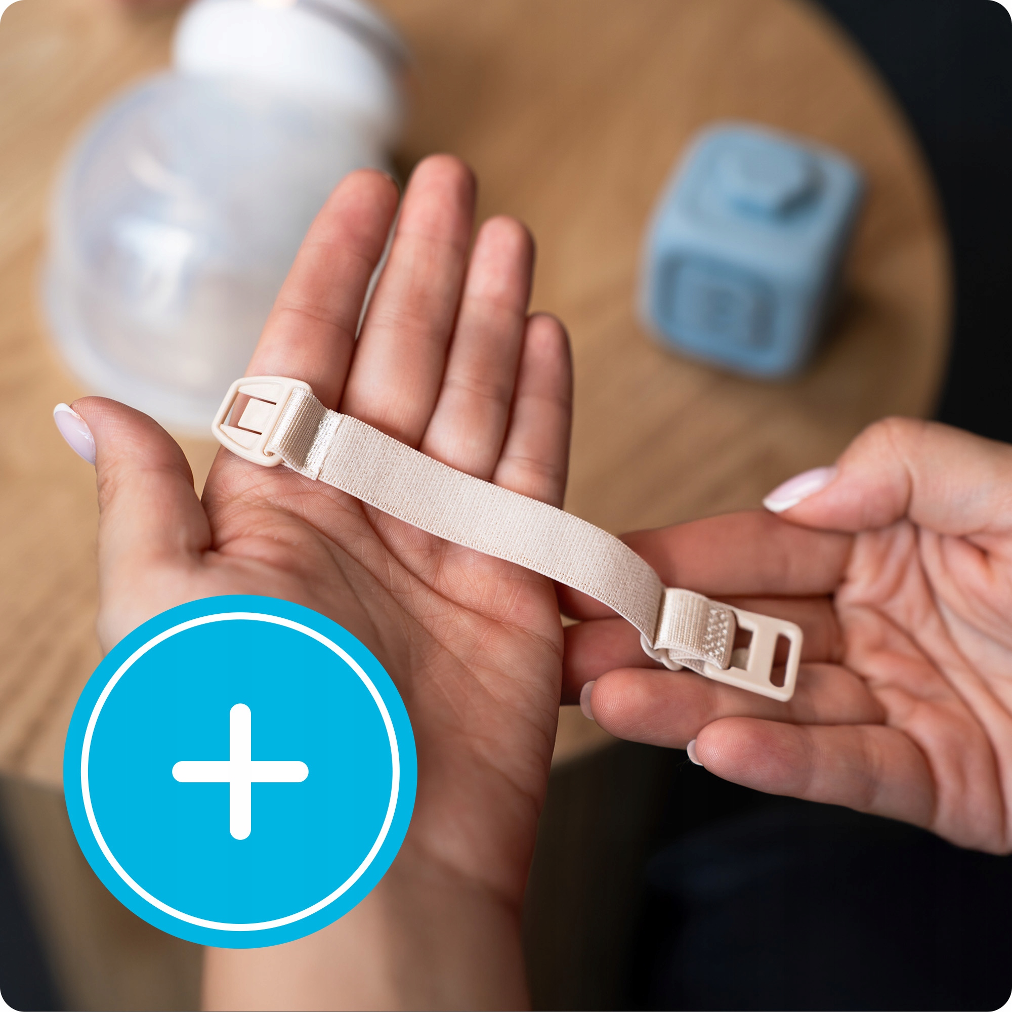 Регулируемая пряжка, прикрепленная к молокоотсосу, позволяет прикрепить его к любому бюстгальтеру. Вы можете использовать молокоотсос даже с не очень эластичным бюстгальтером. Просто замените ремень регулируемой пряжкой и отрегулируйте его длину по своему усмотрению. Регулируемая застежка обеспечивает полную свободу движений при сцеживании молока. Легкая сборка и очистка. Безопасные в использовании элементы молокоотсоса не отнимают много времени.