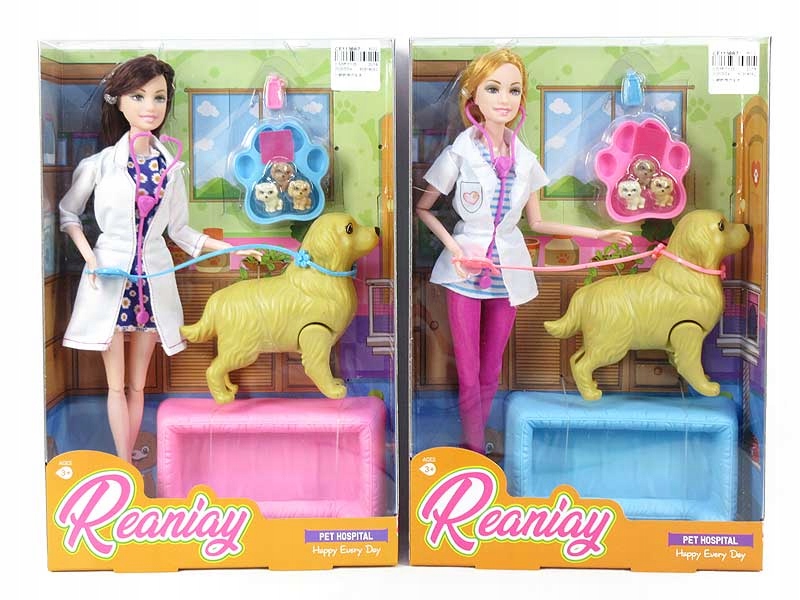 LALKA Z PIESKAMI OPIEKUNKA WETERYNARZ Z PIESKIEM