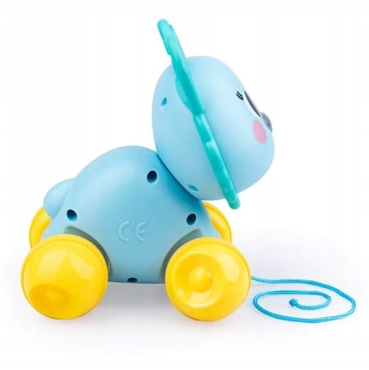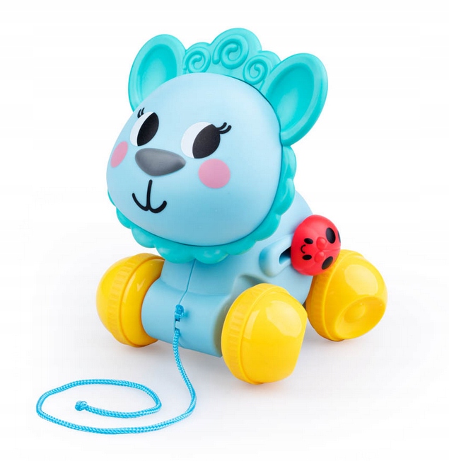 Лама на веревке — идеальный компаньон для игр. Когда малыш ведет животное рукой, оно катается, забавно покачивая головой из стороны в сторону. Лама оснащена четырьмя колесами неправильной формы, которые создают интересный визуальный эффект. Дополнительно их можно ускорять, чтобы животное, положенное на пол, двигалось вперед самостоятельно. На боку ламы сидит божья коровка, которая при движении издает дребезжащий звук.