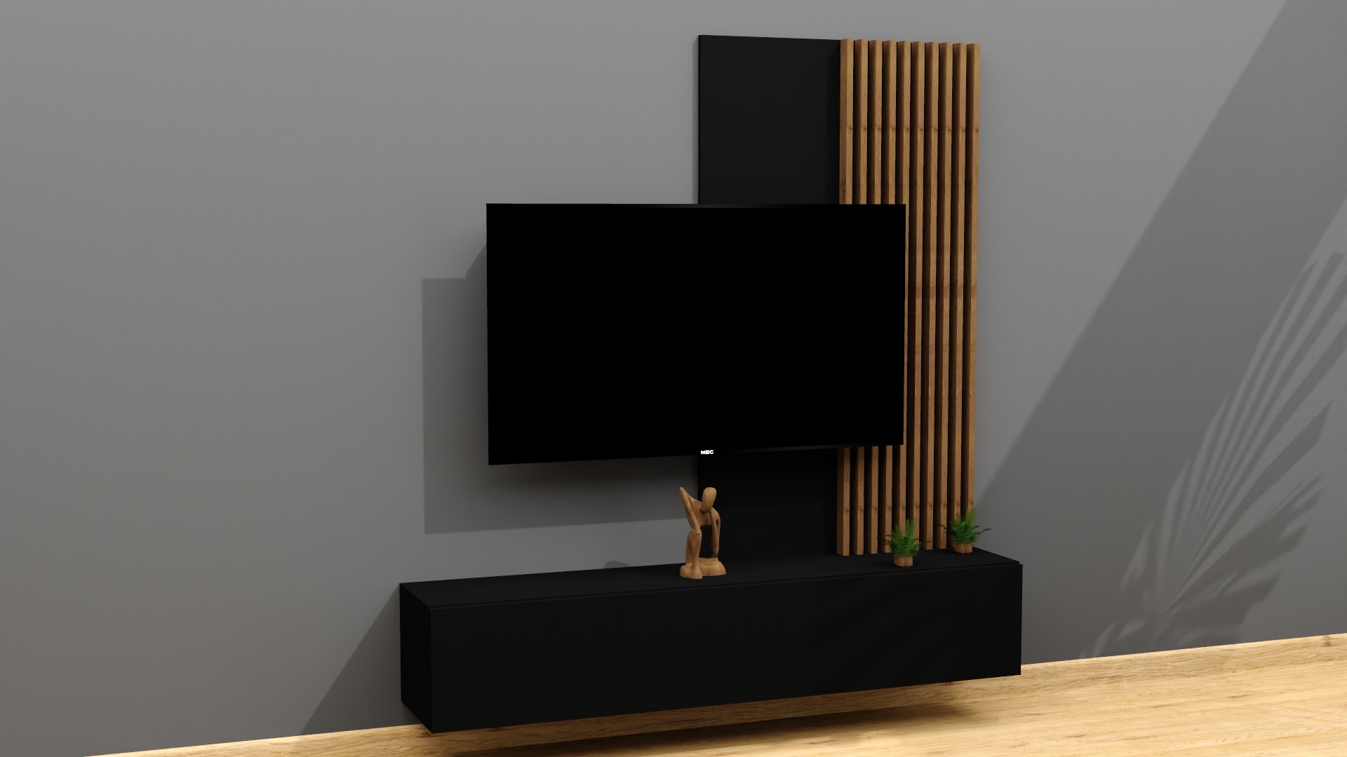 Декоративное панно с ламелями – это современный и элегантный способ быстро, легко и эффектно обустроить гостиную. Благодаря используемым размерам нам не нужно ничего обрезать или подгонять. Просто монтируем панель на выбранной нами высоте и все!