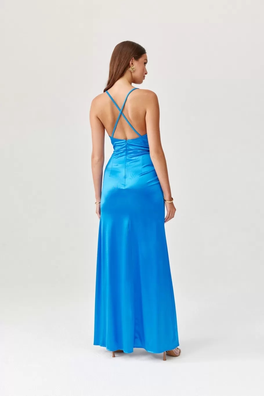 Ламелия – длинное платье с открытой спиной, атласные бретели CHA.