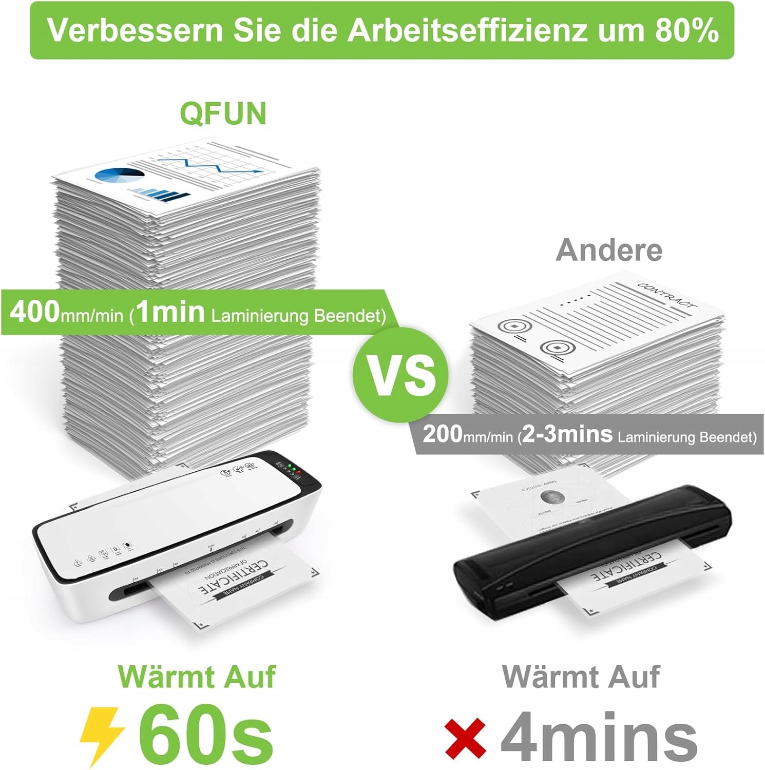- Ламинатор имеет сенсорный экран, поэтому вы можете свободно переключаться между холодным и горячим ламинированием. Кроме того, вы можете ламинировать мешки с разной толщиной. Например, 80 MIC (применение толщины мешка: 55 микро-80 мкл), 125 мкл (прицел толщины мешка: 85 мк-125 мкл). Внешний вид даже более красив, чем в случае нормальной модели. Высокая мощность 400 Вт и скорость 400 мм/мин. При необходимости вы можете сделать одну фольгу за другой. После завершения работы его следует отключить, отключить и оставить, чтобы остыть, прежде чем его откладывают