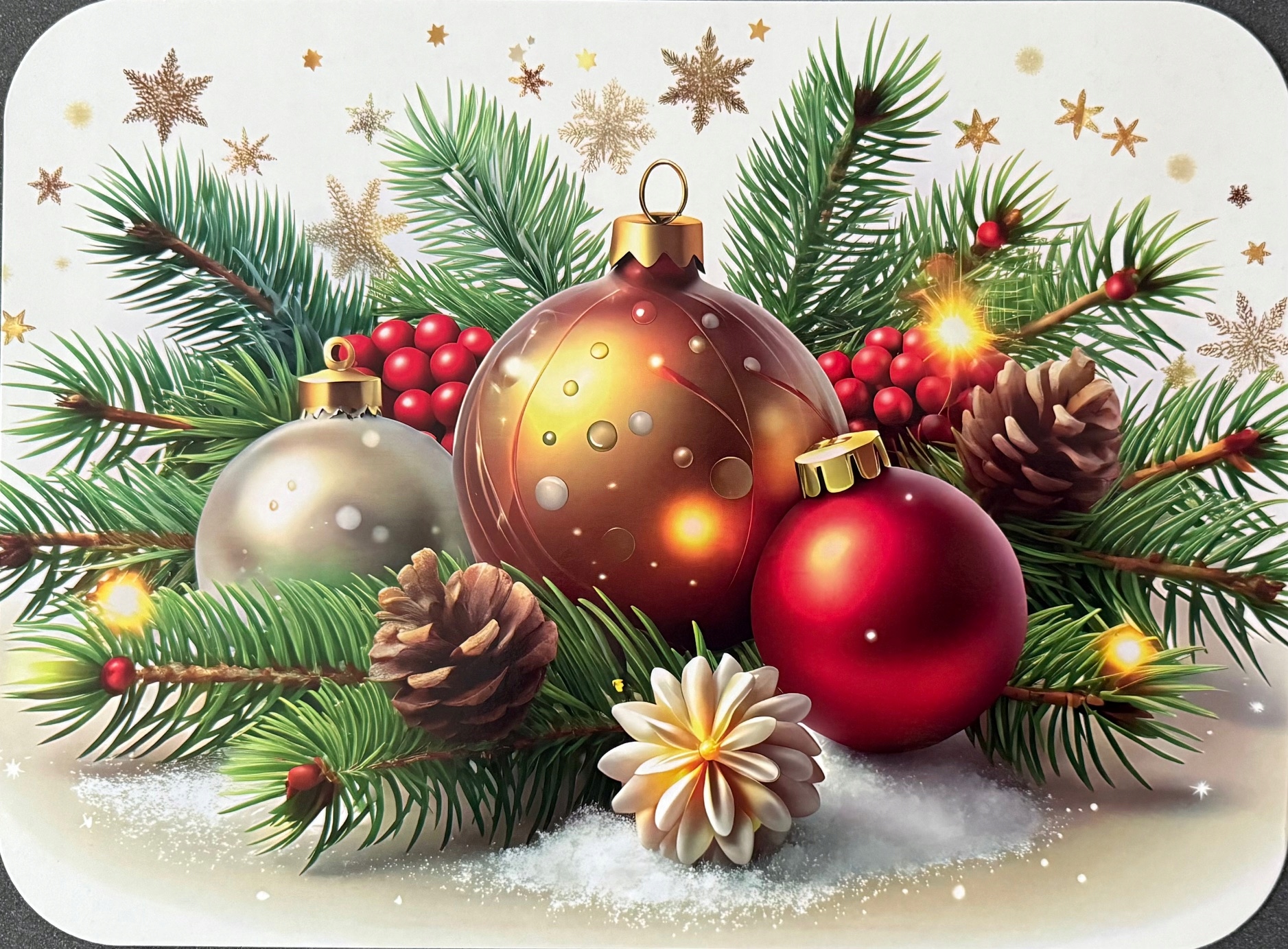 ЛАМИНИРОВАННЫЙ КОВРИК ДЛЯ РОЖДЕСТВЕНСКОГО СТОЛА, ОРНАМЕНТЫ из ШАРОВ-ГАРЛАНД