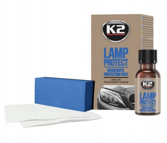 K2 LAMP PROTECT — долговечное защитное покрытие, предназначенное для фар из пластика и стекла. Предотвращает пожелтение и потускнение ламп. Защищает от вредного воздействия УФ-лучей. Сохраняет поверхность лампы чистой, отталкивая воду и облегчая удаление грязи. Защищает фары от легких царапин.