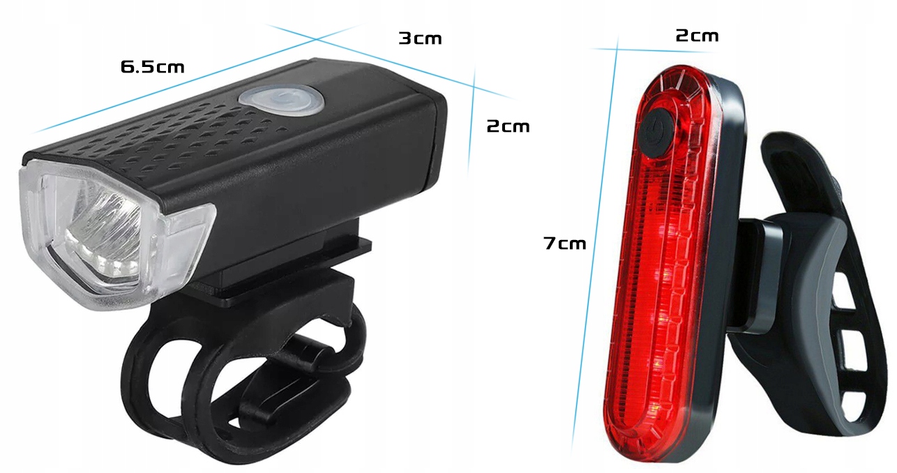 Комплект фонарей, которые обеспечат вашу безопасность в велосипедной поездке. Комплект готов к сборке – никаких дополнительных инструментов не требуется. Универсальный дизайн делает фары идеальными для любого типа велосипеда. Особая конструкция отражателя не позволяет ослеплять других водителей. Задний фонарь обеспечивает отличную видимость велосипедиста. Фонари питаются от аккумуляторов, заряжаются через USB-кабель, входящий в комплект.