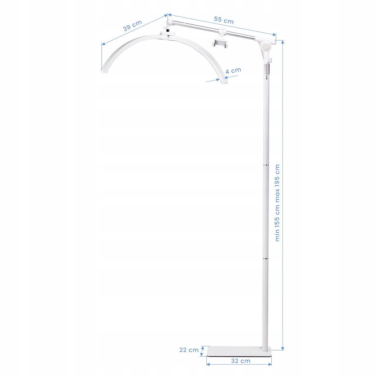 Штатив легко регулируется в диапазоне 155-195 см с помощью стопорного винта, расположенного на кронштейне. Это позволяет точно регулировать положение головы в соответствии с индивидуальными потребностями пользователя и различных типов косметических кресел, кушеток и процедурных столов, обеспечивая оптимальное освещение рабочего места. Цвет и интенсивность света можно регулировать с помощью двух пультов - один, расположенный рядом со светильником, всегда под рукой, а другой позволяет дистанционно управлять настройками. Кроме того, благодаря встроенному магниту его можно удобно закрепить в выбранном месте.