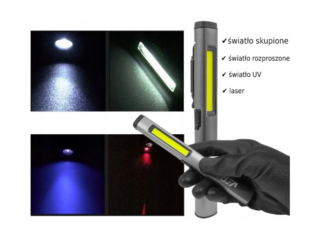 VERKE V987553 ОСВЕЩЕНИЕ ДЛЯ МАСТЕРСКОЙ COB LED +UV, 400LM + МНОГОЗАДАЧНАЯ ЛАЗЕРНАЯ УКАЗКА