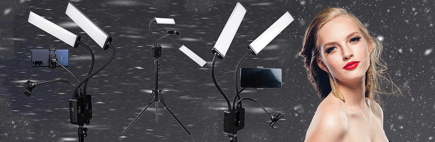 Двуручная светодиодная лампа с держателем для телефона, штативом и сумкой