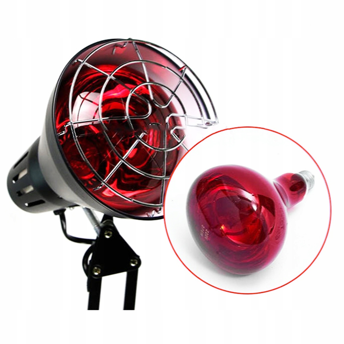 💡РЕГУЛИРУЕМАЯ ВЫСОТА И УГОЛ: инфракрасная лампа имеет прочную металлическую подставку и основание, а шея и голова регулируются на 180°. Лампу можно установить в нужном положении и направлении в зависимости от ваших потребностей. Сетчатый чехол против ожогов безопасен, надежен и удобен в использовании. Разъем головки лампы оснащен резьбой Е27 и ввинчивающейся лампочкой, что делает ее универсальной и легко заменяемой.