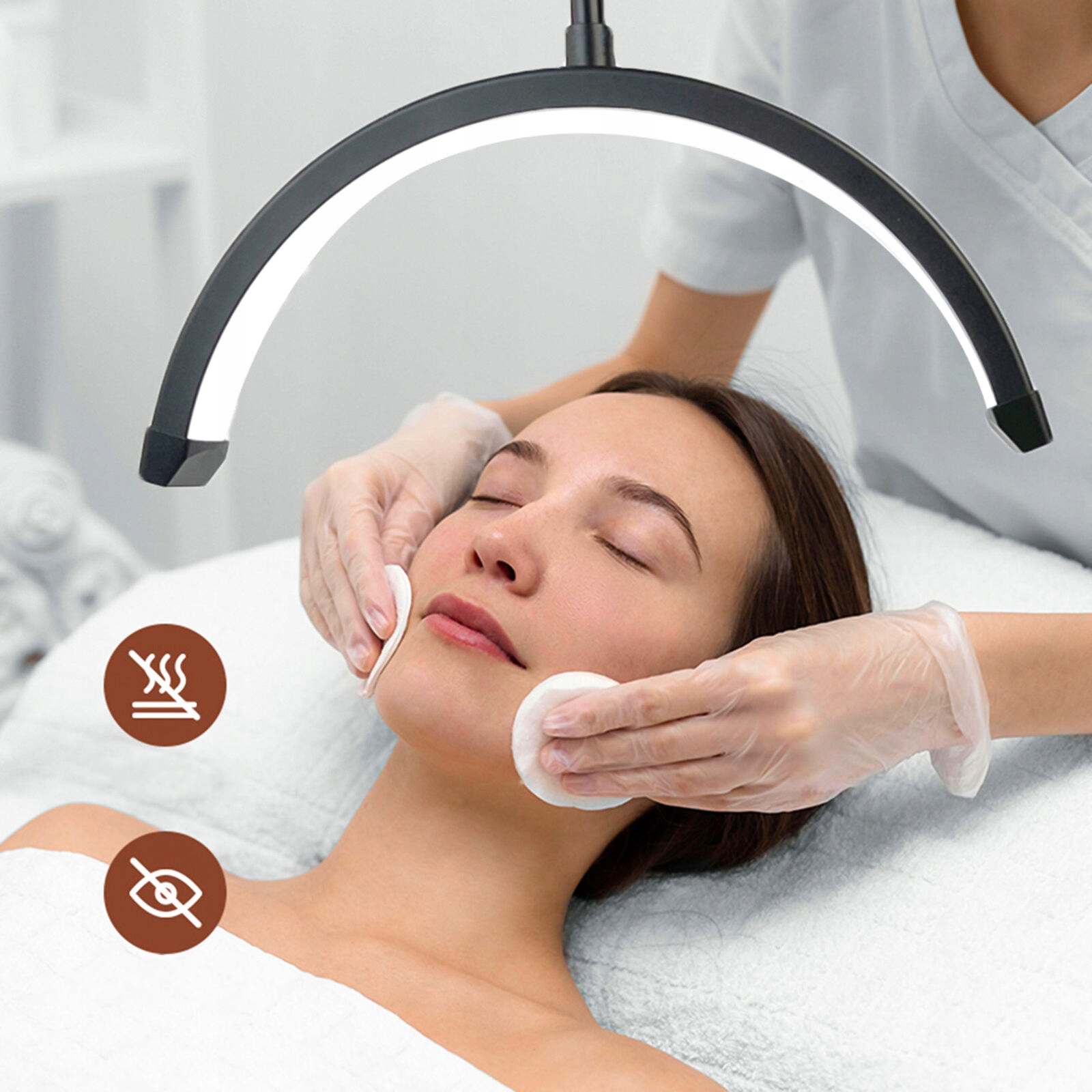 - Светодиодный заполняющий светильник в форме полумесяца подходит для настольных видеоблогов, прямых трансляций салонов красоты, косметических проектов и т. д.