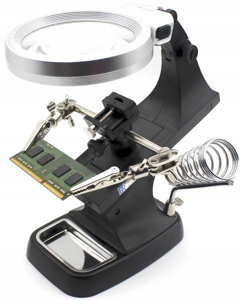 Монтажная ручка третья рука с увеличительным стеклом с 10 светодиодной подсветкой и спиральной ручкой для пайки.