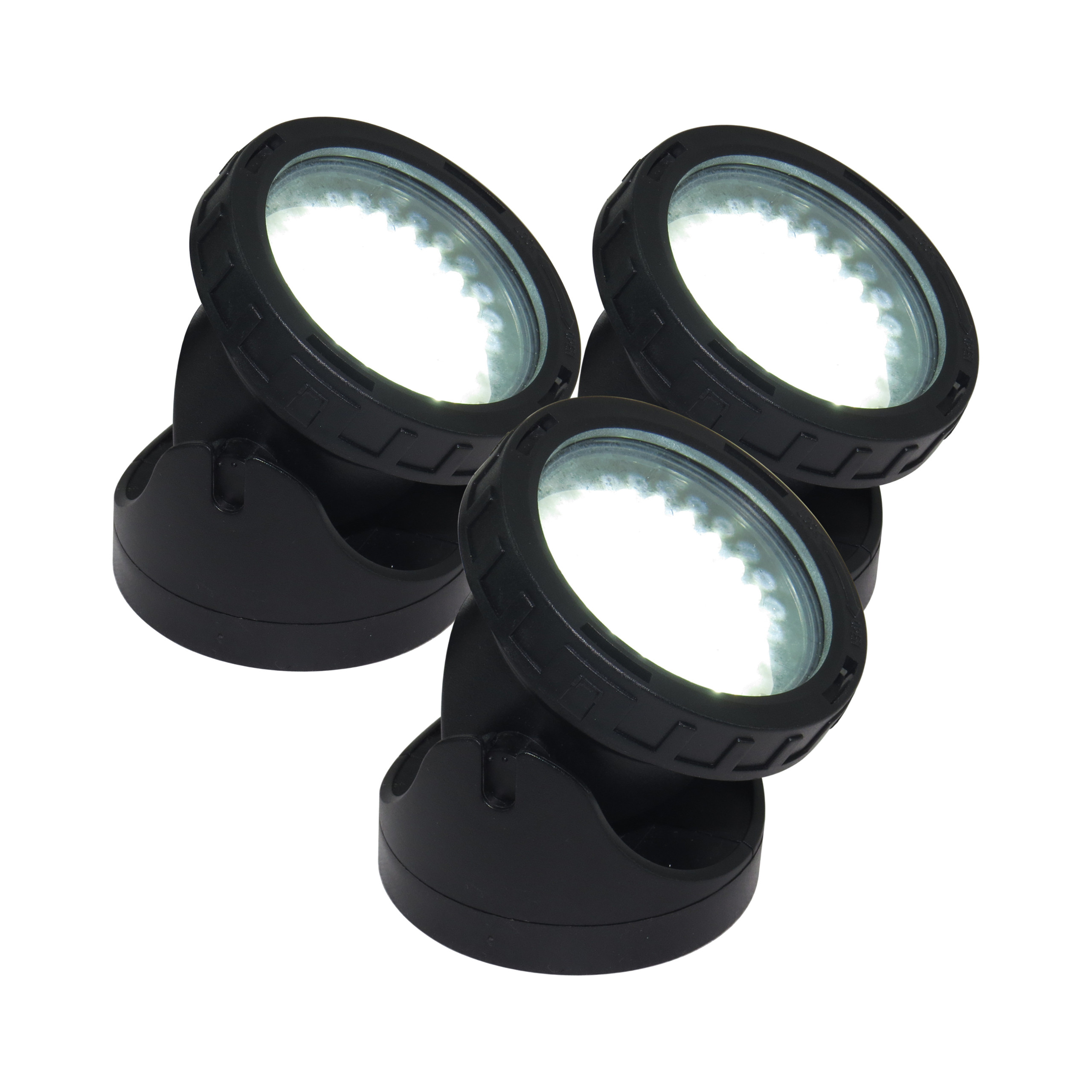 Прожекторы предназначены для работы как под водой, так и вне воды. Они предназначены для освещения фонтанов, каскадов или мостов фокусированным светом. Их также можно использовать вне воды для освещения сада.