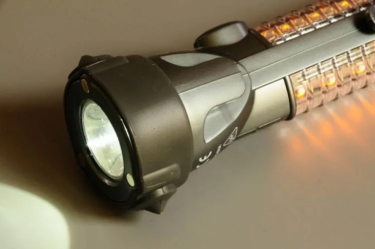 Кроме того, фонарик имеет еще и функции безопасности - молоток для разбивания стекла и нож для перерезания ремней безопасности - надежно в случае аварии.