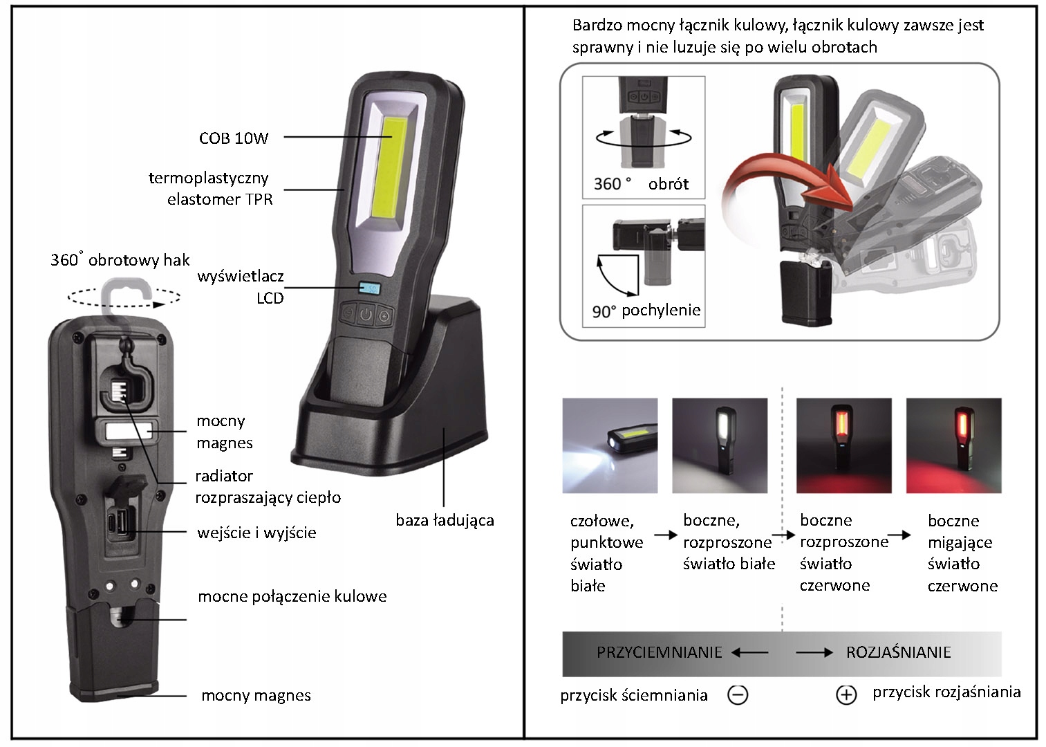 - COB LED белый, 100% - 6h (плавная регулировка интенсивности света)