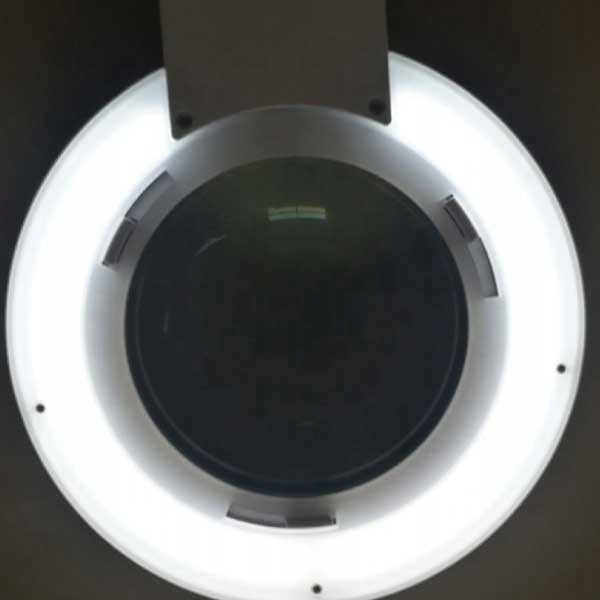 Лампа-лупа 9006LED-127-8D предназначена для работы на столешнице. Наблюдаемый объект увеличивается с помощью стеклянной линзы диаметром 127 мм и оптического увеличения 8D. Увеличение в 8 диоптрий составляет примерно х2,75. Лампа имеет сменную оптику, т.е. пользователь может вручную выкрутить линзу и вкрутить другую с другим коэффициентом увеличения без использования дополнительных инструментов. Для повышения комфорта работы вокруг линзы расположены 60 ярких SMD-светодиодов, равномерно освещающих рабочую зону. Благодаря равномерному распределению светодиодов источник света не отбрасывает тени. Благодаря встроенной системе регулировки интенсивности освещения мы можем настроить интенсивность освещения в соответствии с преобладающими условиями наблюдения. Преимуществом использования светодиодов является их низкое энергопотребление (энергосбережение) и отсутствие нагревательного эффекта. Лампа очень хорошо освещает место наблюдения. Лампу также можно с успехом использовать как обычную настольную лампу.