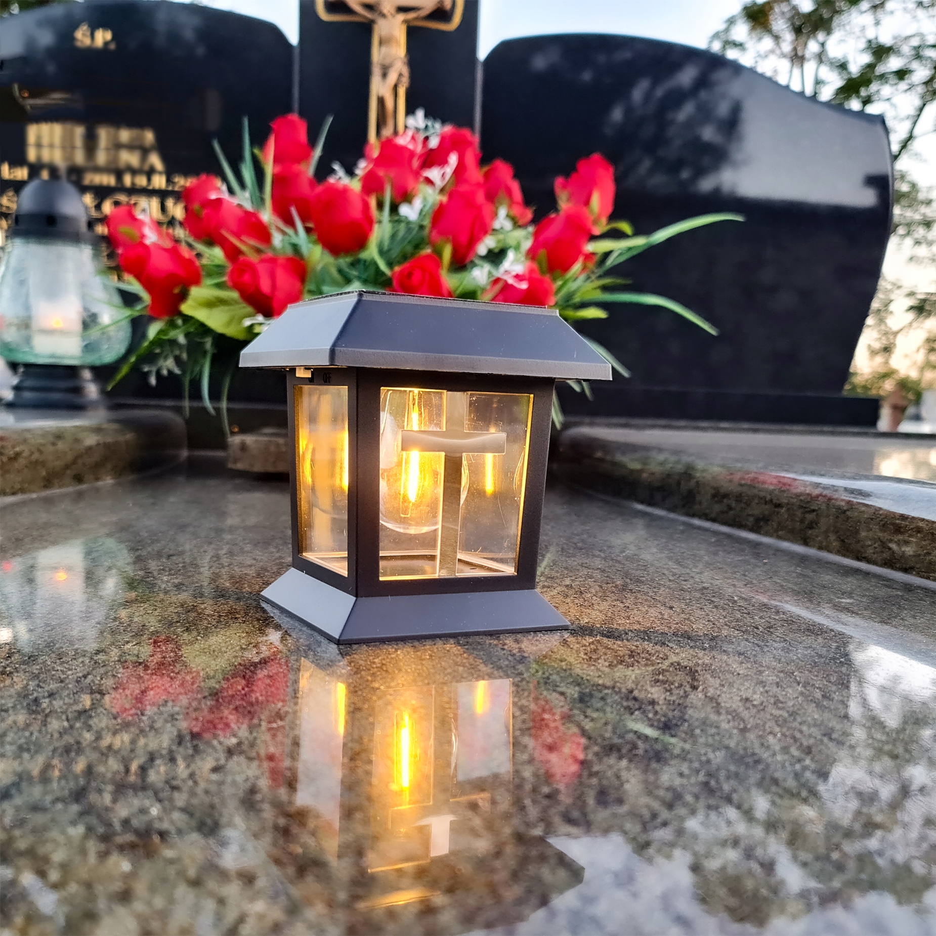 Солнечная свеча светодиодная фонарь для могильной статуэтки для кладбища с крестом