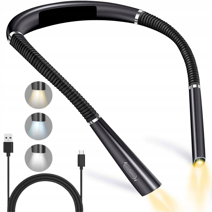 LAMPKA LED DO CZYTANIA – NA SZYJĘ, USB, 3 BARWY, AKUMULATOR