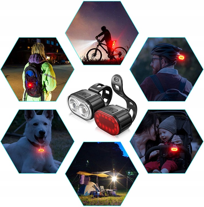 Lampka Rowerowa Światło PRZÓD TYŁ LED na rower kierownicę MOCNA USB jasna
