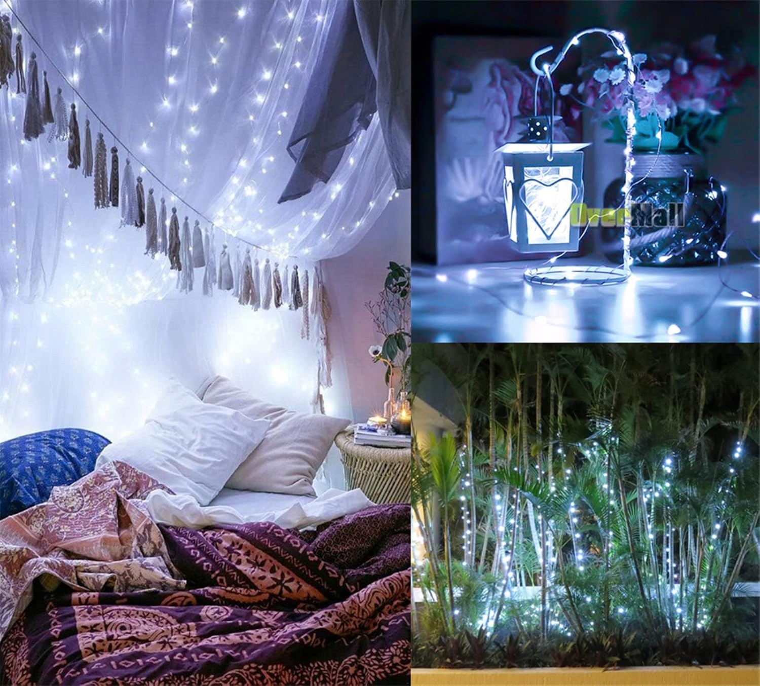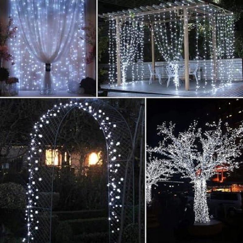 LAMPKI OGRODOWE SOLARNE GIRLANDA 200 LED ZIMNE DRUCIK 20M ZEWNĘTRZNE OZDOBA
