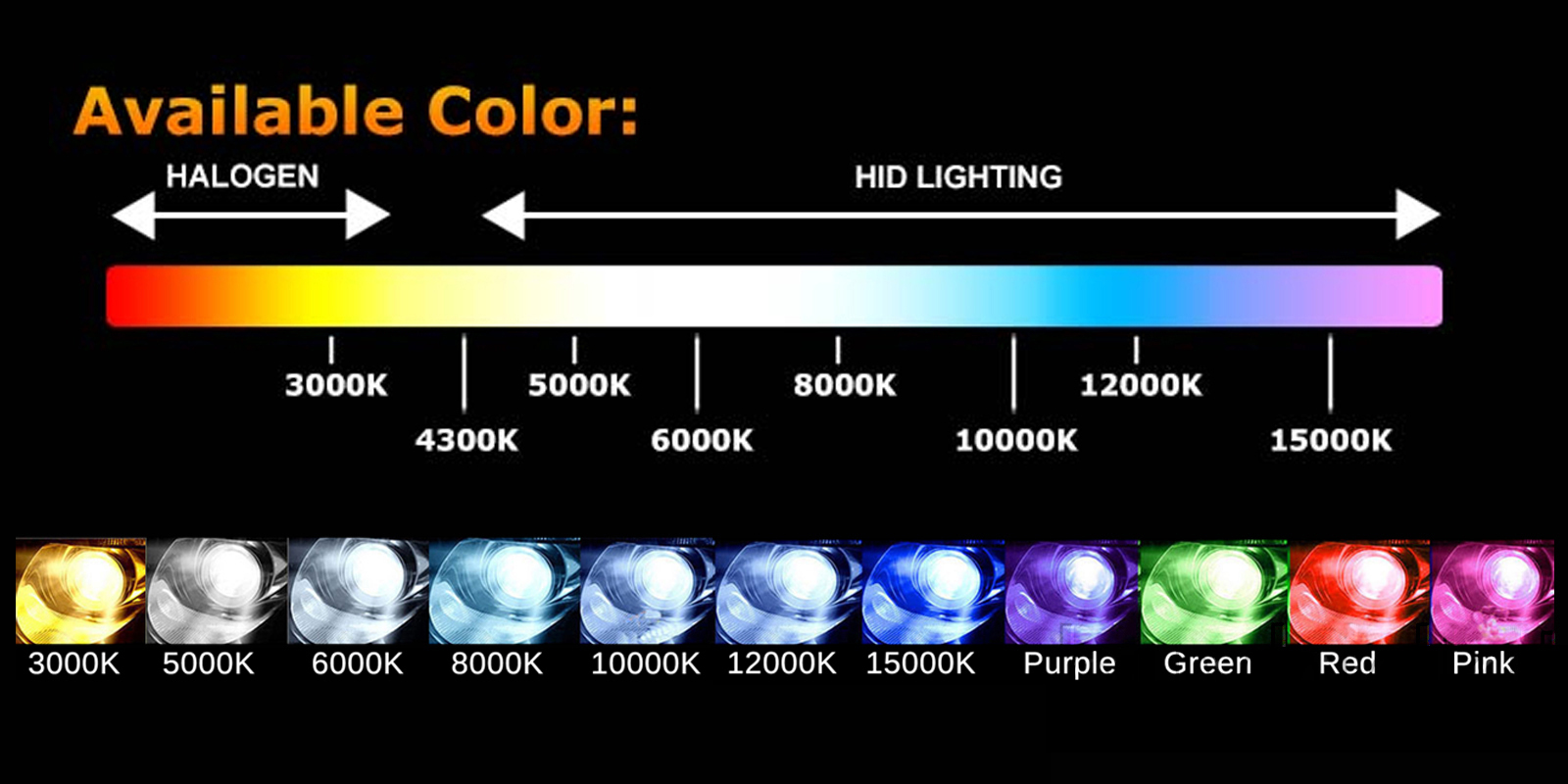 - Цвет света: 4300K, 6000K, 8000K и 1000K .
