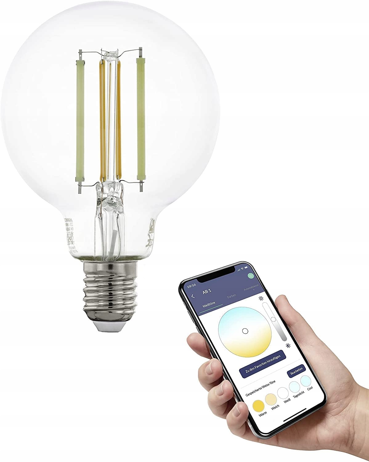 EGLO Connect.z Подключаемая светодиодная лампа E27, G80, ZigBee, управление через приложение и голос, регулировка яркости, теплый-холодный белый, 700 люмен, 6 Вт, прозрачная, винтажный стиль