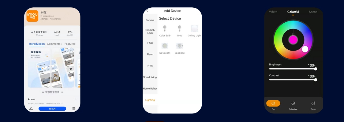 С помощью приложения Imou Life вы можете регулировать цвет света, яркость и сцены, чтобы создать более умный и красочный дом.