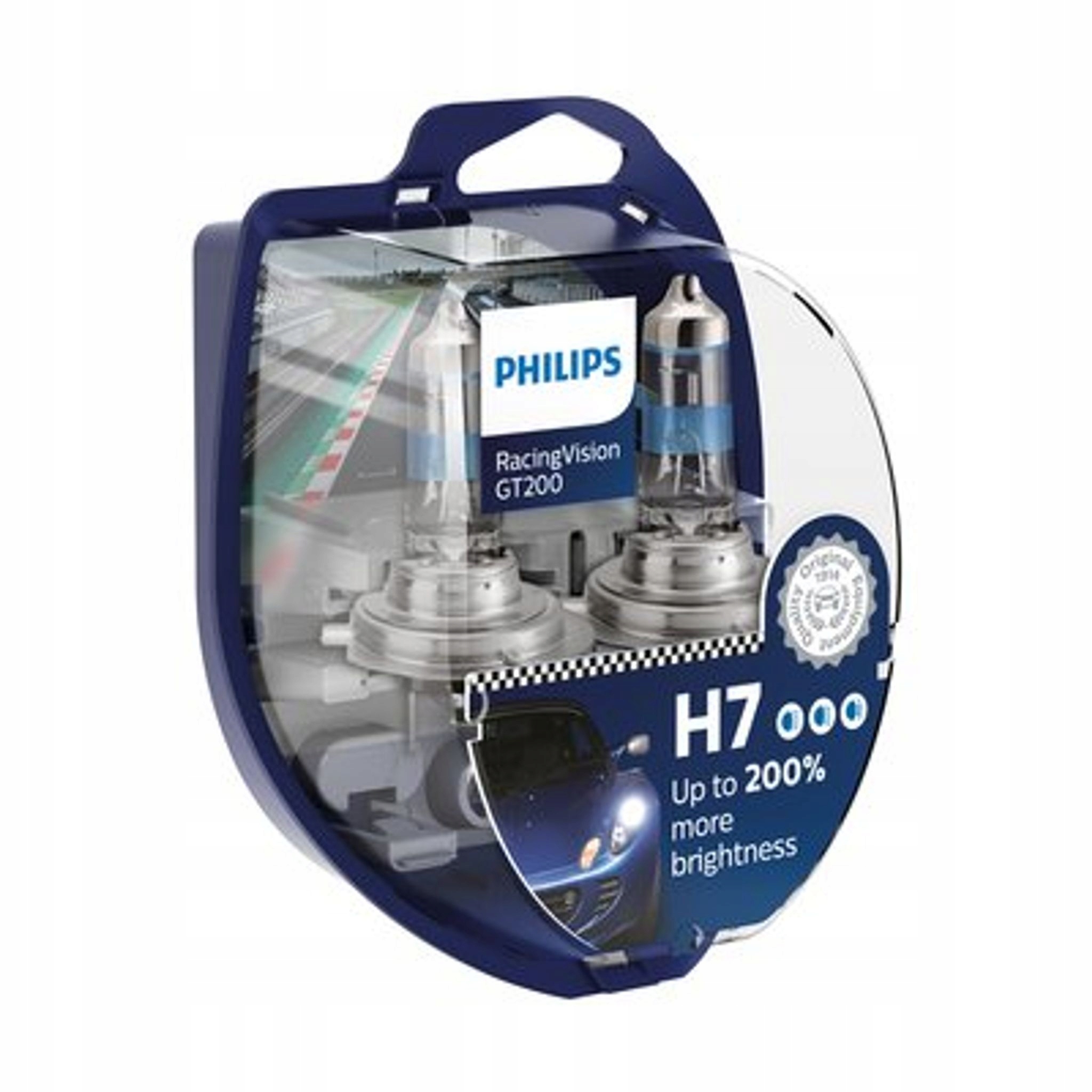 Лампы Philips H7 Racing Vision GT200 обеспечивают на 200 % более яркий свет по сравнению со стандартными лампами. Это способствует лучшей видимости на дороге и повышает безопасность во время путешествия.
