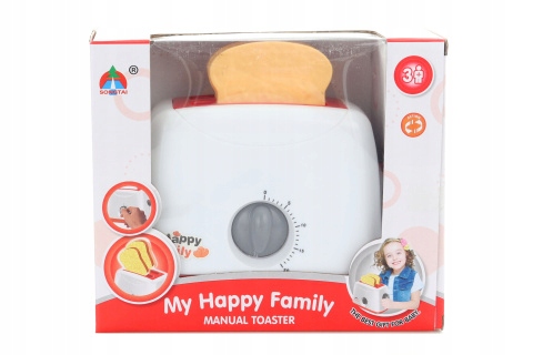 Пластиковый тостер. Когда вы нажимаете и поворачиваете ручку, тост выскакивает. Размеры упаковки составляют ок. 21 х 10 х 18 см. Возраст 3+