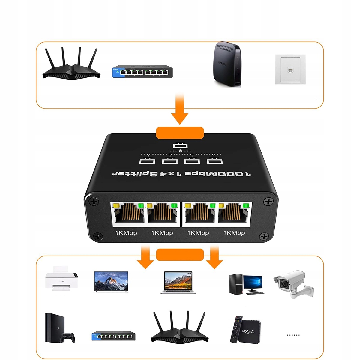 Все сетевые разветвители позволяют подключать несколько устройств одновременно, что оптимизирует использование сети и ее стабильность. Благодаря высокой скорости передачи данных до 1000 Мбит/с этот разветвитель обеспечивает плавную и эффективную связь между подключенными устройствами, что делает его идеальным решением в средах с ограниченным количеством портов Ethernet.